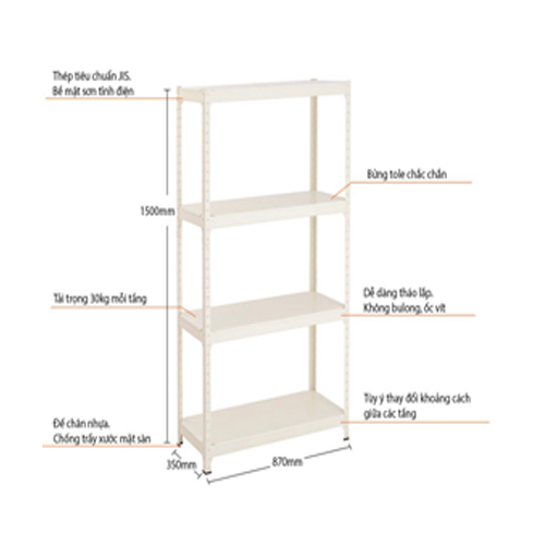 ♦ Bửng tole chắc chắn với tải trọng chịu lực 120 kg (30kg mỗi tầng). Khoảng cách giữa các tầng có thể điều chỉnh tùy ý.