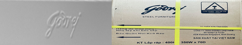 ♦ Logo Godrej chính hãng được dập nổi góc bên trái của tủ hồ sơ cánh lùa.